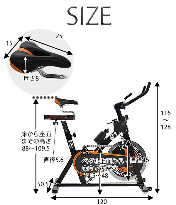 ■本機仕様 ○ピスト式の本格スピンバイクです。