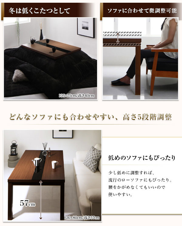 【80×120cm】【高さ調節付き】こたつテーブル(単品)/こたつ付きテーブル コタツテーブル 机 炬燵 食卓テーブル カフェテーブル 食卓 ダイニング リビングダイニング