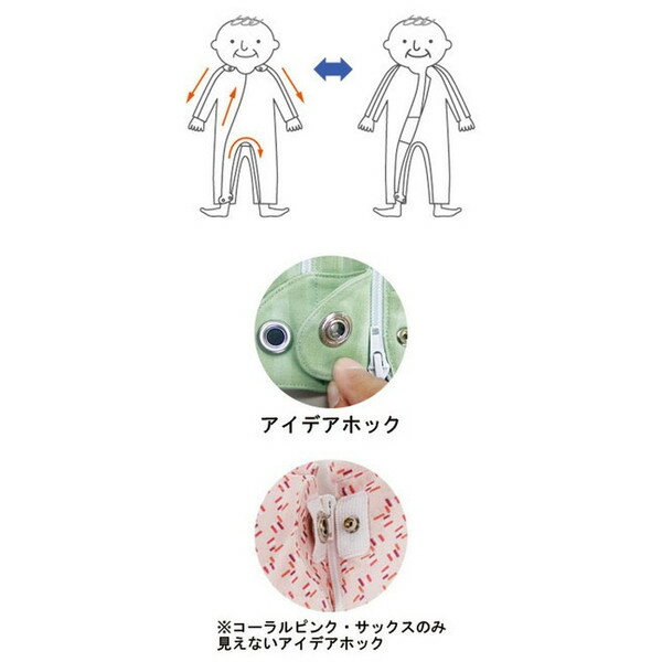 (※コーラルピンク・サックスのみ見えないアイデアホック)・両腕にもファスナーがあるタイプ。