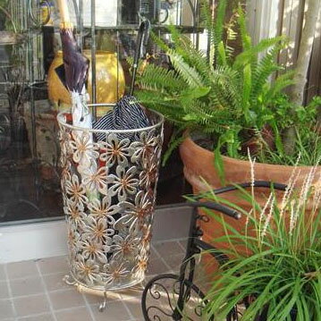 アイアン傘立て 花柄 シルバー 1407IFH004【玄関収納】