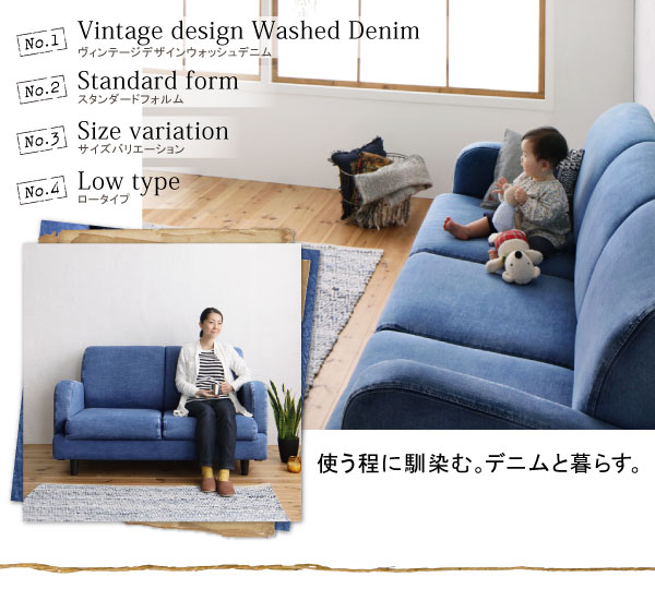 <バリエーション>ヴィンテージデザイン デニムソファ Rowena ロウェーナー 2Pヴィンテージデザイン デニムソファ Rowena ロウェーナー 3P