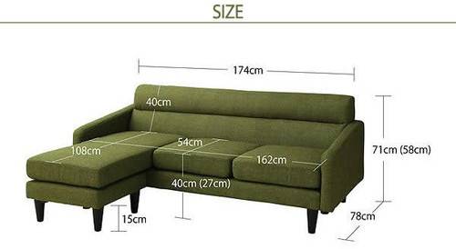 コーナーソファ コーナーソファー L字 l字型 l型 オットマン スツール 足置き 3人 三人 4人 四人 おしゃれ 布 ファブリック 北欧 カフェ 応接 リビング カウチソファー 座椅子 ローソファ ( ミドル Mグリーン 緑 )