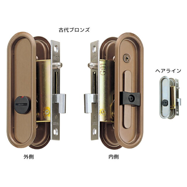 BEST [ No.252T / ヘアライン ] 引手付鎌錠 表示錠(トイレ錠) バックセット30mm ドア厚28mm〜36mm 手掛け兼用 引戸錠 室内用 シルバー
